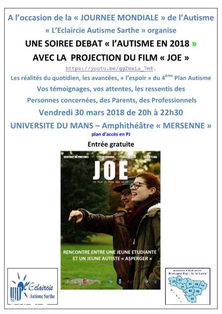 vous invitent à une soirée débat sur l’Autisme avec la projection du film « JOE »